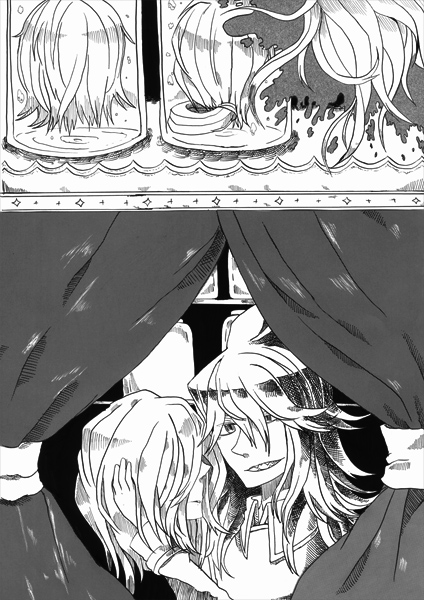 この首を絞められている青年がチェルノボグ、スラヴ神話の悪神、死神。